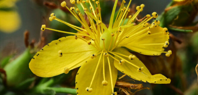 • St John’s Wort, Common St John’s Wort, Perforate St John’s Wort, St John’s Grass, St John’s Blood, Klamath Weed, Witch’s Herb, Devil’s Flight, Tipton Weed, Gammock, Goatsbeard, Goatweed, Herb John, Penny John, Rosin Rose, Touch and Heal